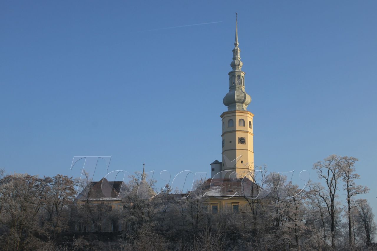 Spanilá věž zámku v zimě
